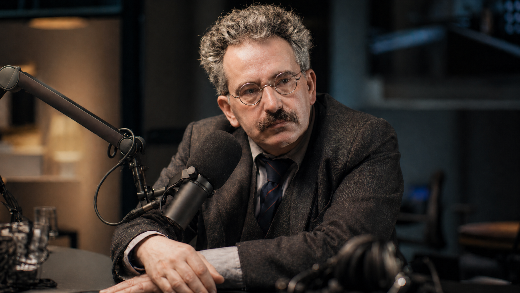 An interview conducted in the arcade. Not a specific one. The one that contains all the others. He has his notebook. He is always about to leave.