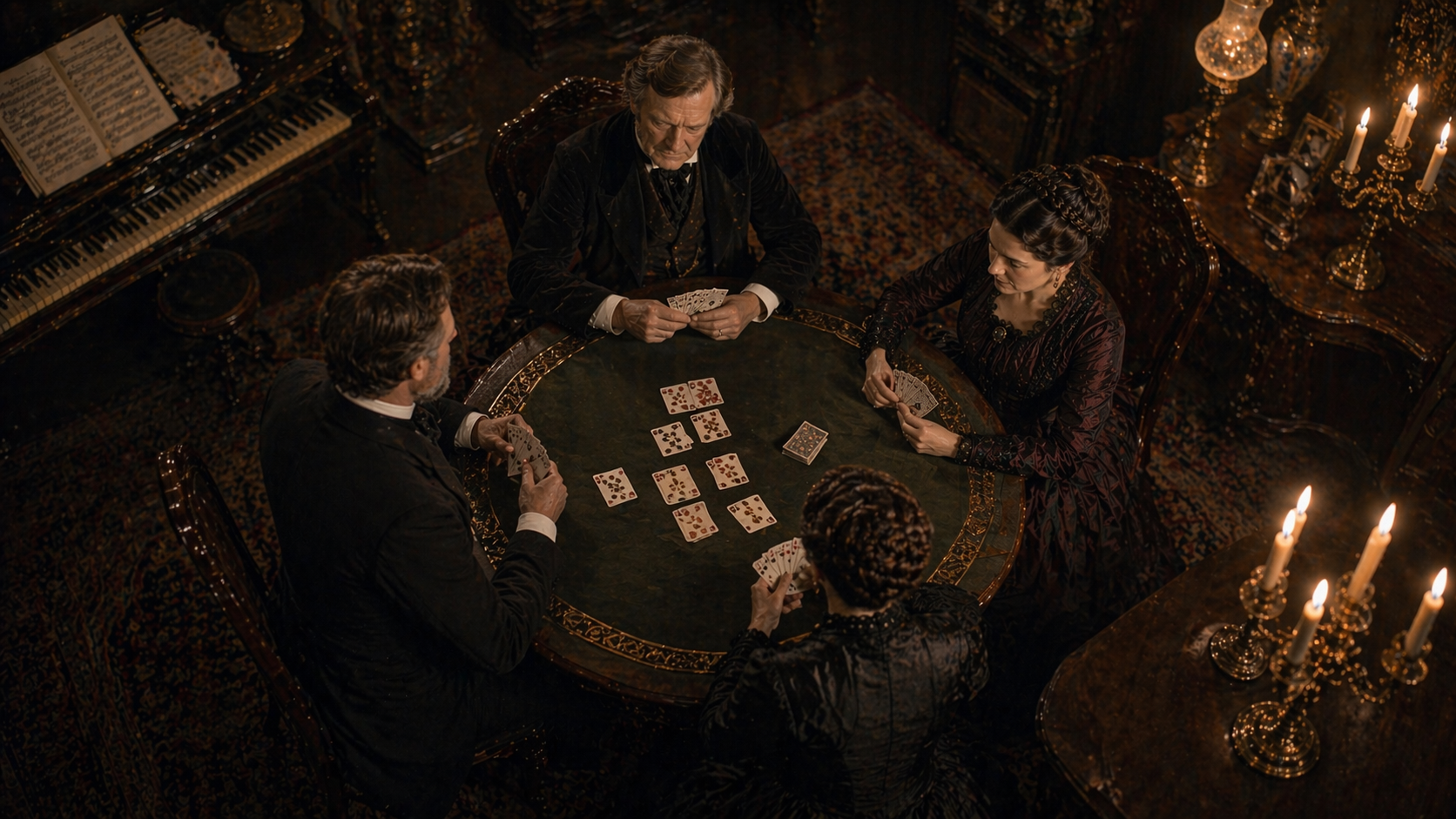 The evenings at Wahnfried, the villa Wagner built in Bayreuth in 1874, naming it after the peace he had finally found from the world's illusions, followed a recognizable pattern. Dinner with the inner circle. Readings aloud, often from the Norse sagas or Schopenhauer, sometimes from Wagner's own prose. Music, sometimes improvised at the piano. And then, with the lamps low and the company settled, cards. Whist in particular: the English trick-taking game that had crossed the Channel into German aristocratic and bourgeois parlors sometime in the previous century, and by Wagner's time had become the default social lubricant of educated European evenings.