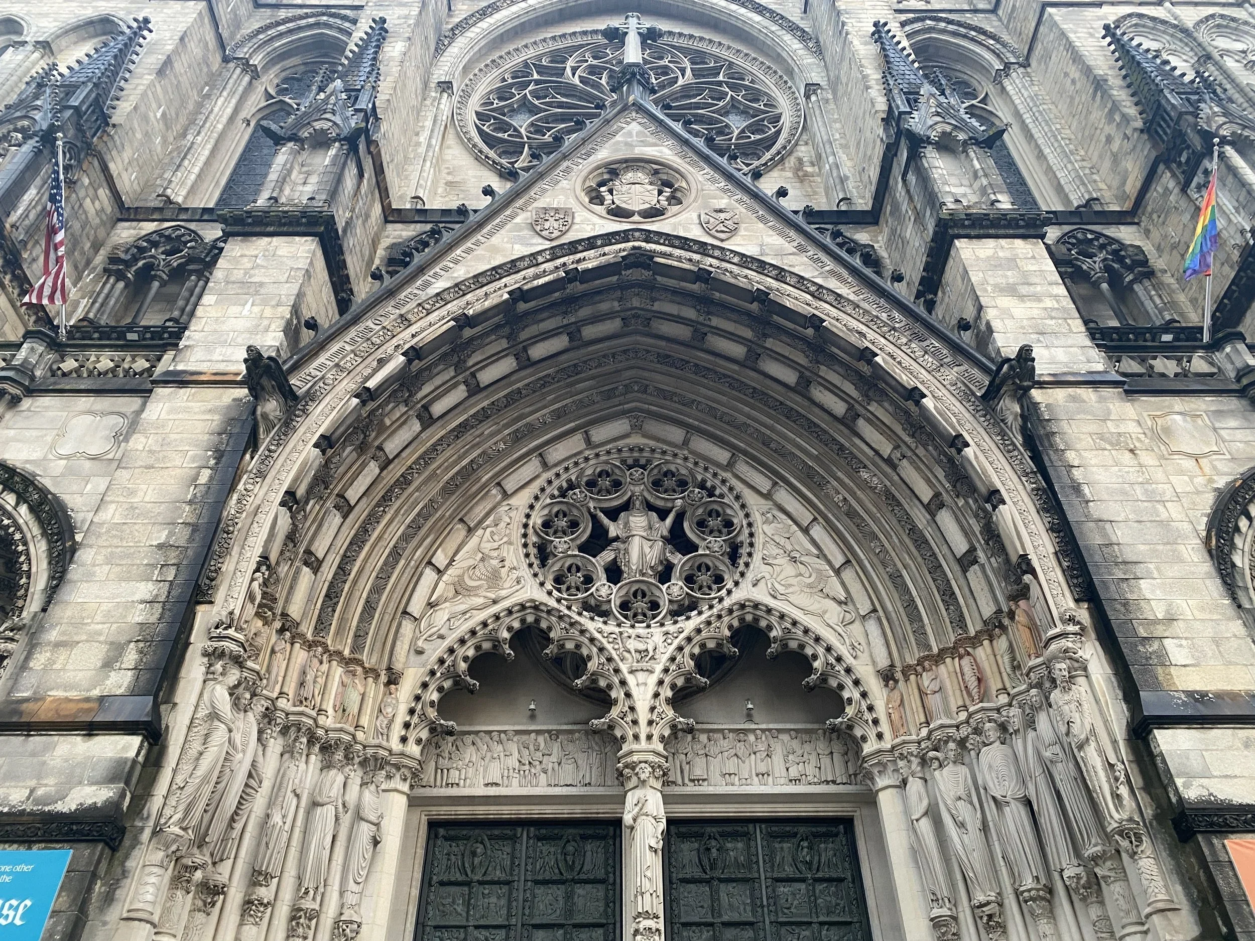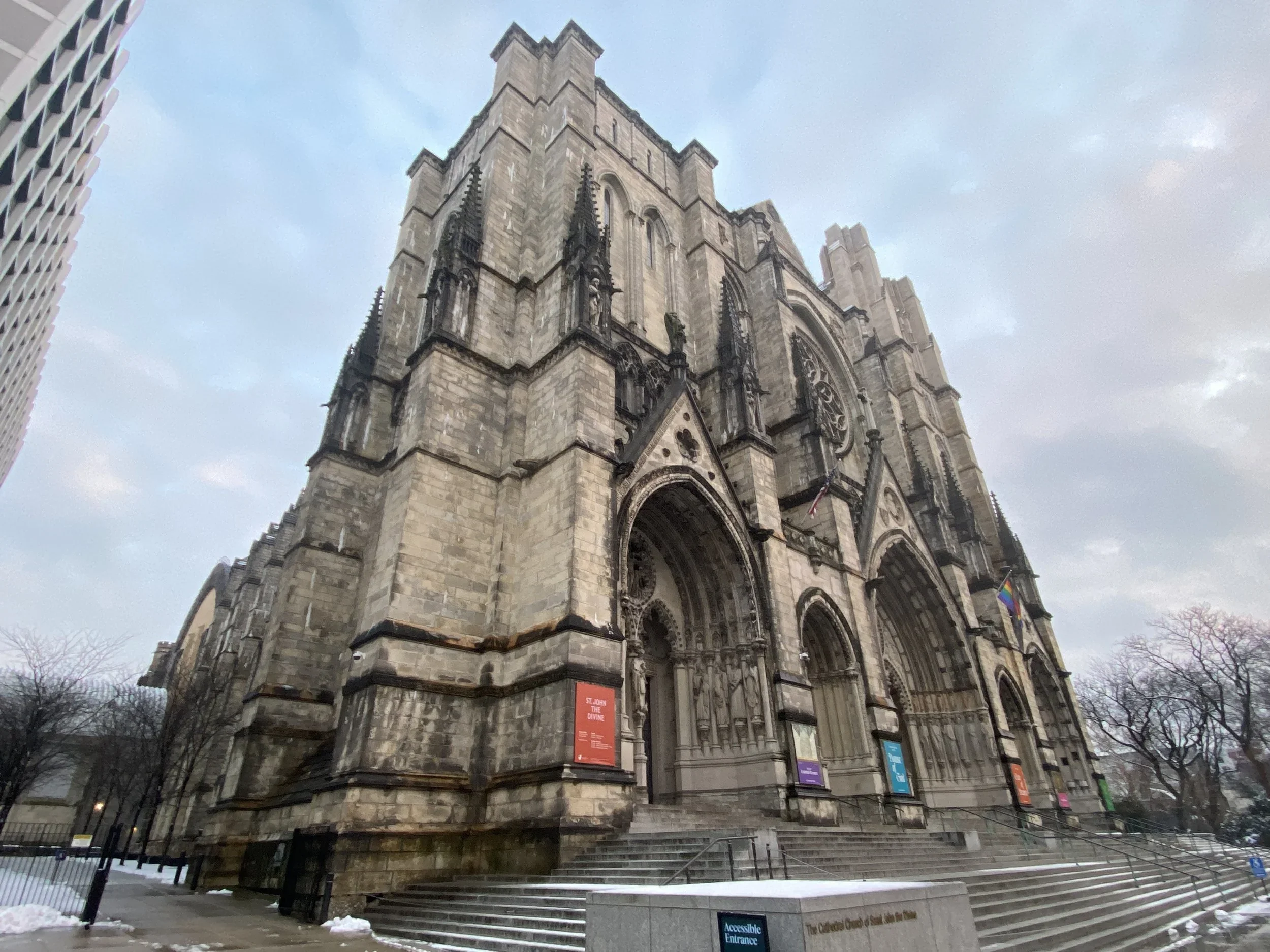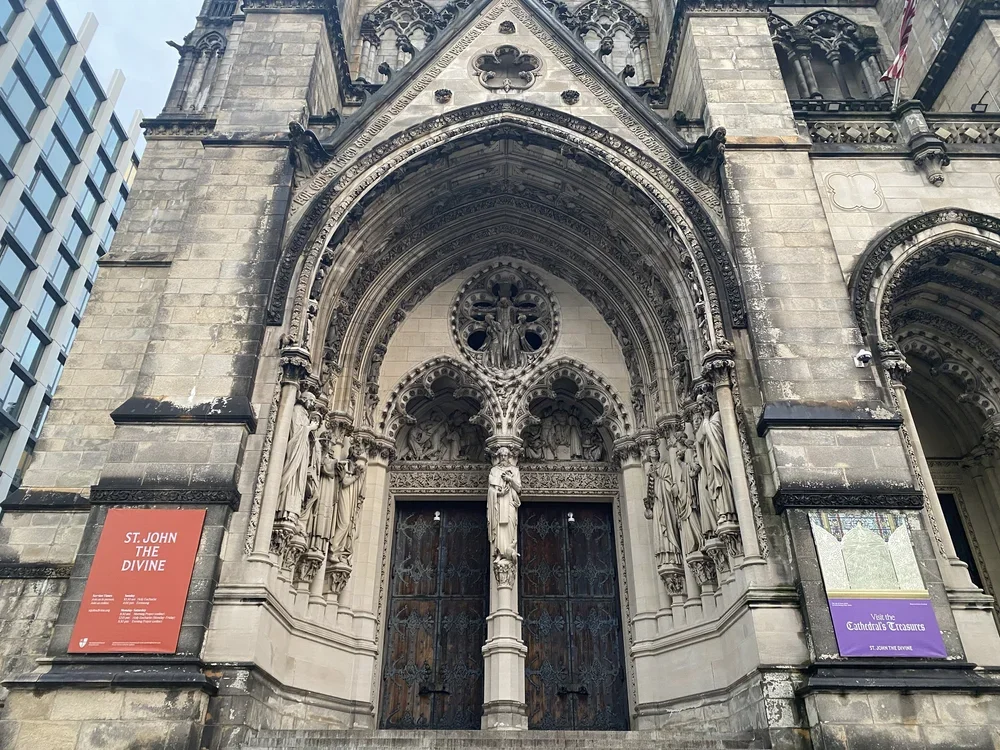 The Cathedral Church of St. John the Divine has been under construction since 1892 and is still not complete. The west facade, the massive rose window and the towers rising from it, is the most finished part. The interior nave, extended by Cram in the early 20th century, is proportionally one of the longest in the world; the crossing tower was never built, giving the building a strange, truncated silhouette that declares, from every angle, that it is still in process. It is the most prominent unfinished thing in New York, which is itself a city of unfinished things, and the unfinishedness is not accidental or merely a matter of funding. It is the building's honest condition.