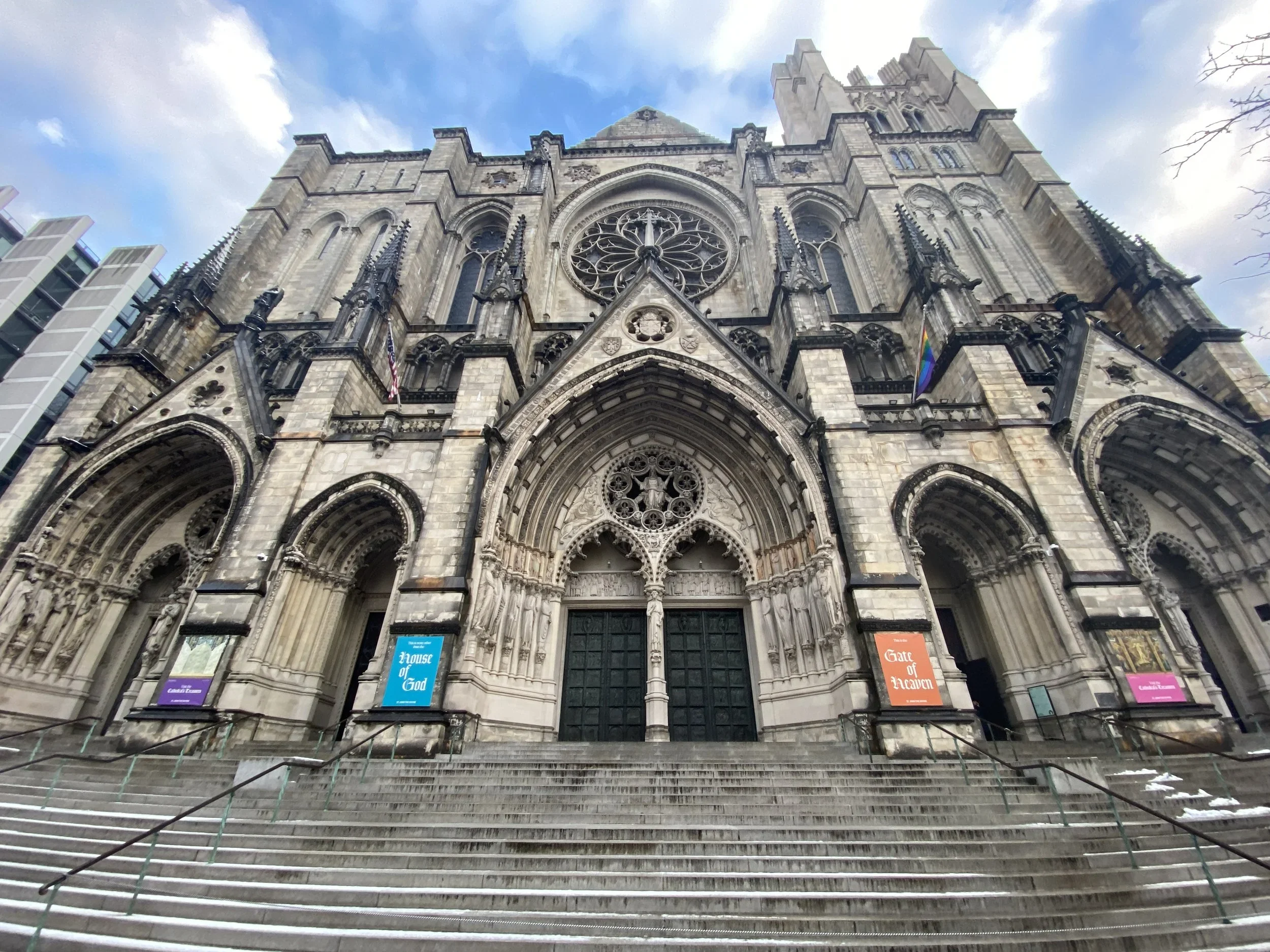Time the walk so the Chorus reaches its climactic close as you arrive at the foot of the cathedral's main steps, looking up at the rose window. Stand here.