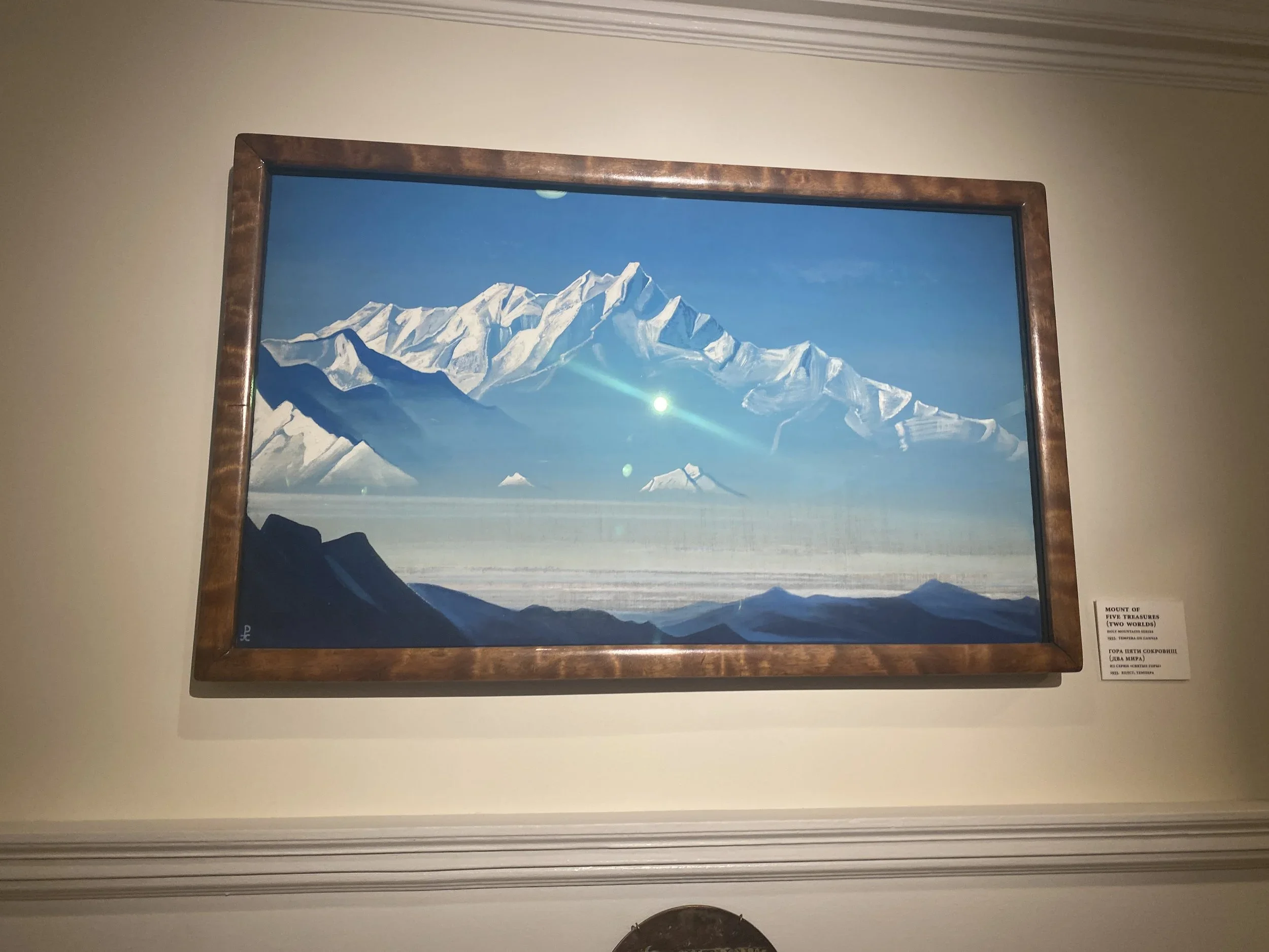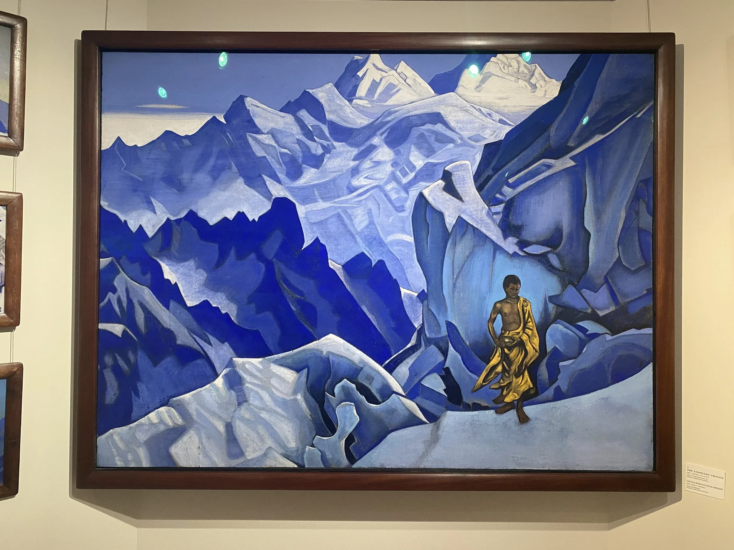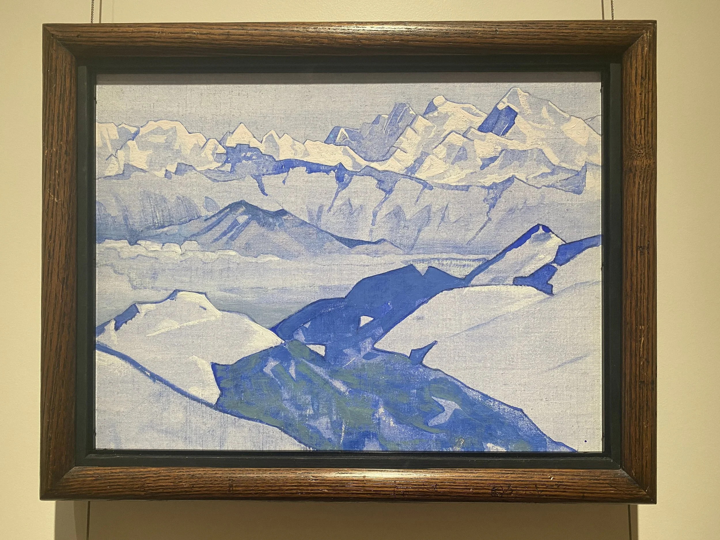 Enter the museum and move through the ground floor rooms until you find a gallery dominated by the large Himalayan canvases. The ones where the peaks rise into an indeterminate sky and the temples cling to impossible slopes and the light is doing something that cannot be explained by the position of the sun.