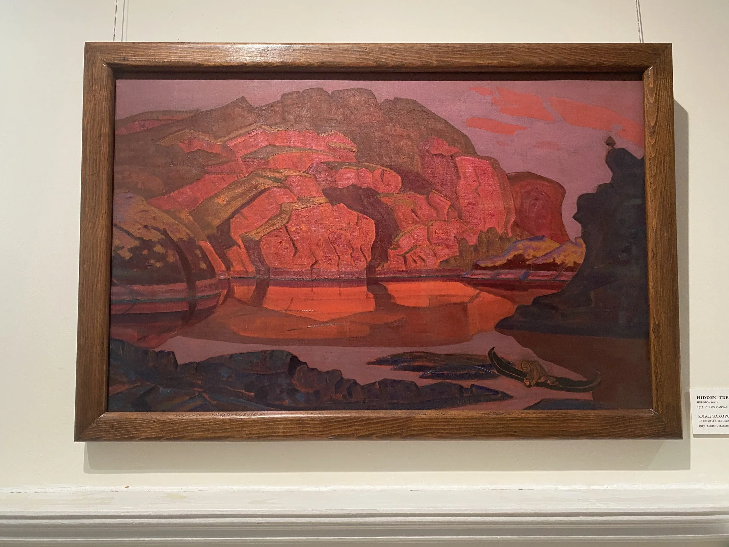 His Himalayan paintings are one of the most immediately Wagnerian bodies of visual work in existence, not because they depict Norse mythology but because they depict the same metaphysical geography. Peaks and temples at the edge of visibility, light that comes from an indeterminate source, figures on the threshold between the ordinary world and something else. They are what In Fernem Land looks like if you give it color and stone and the specific quality of Himalayan altitude-light.